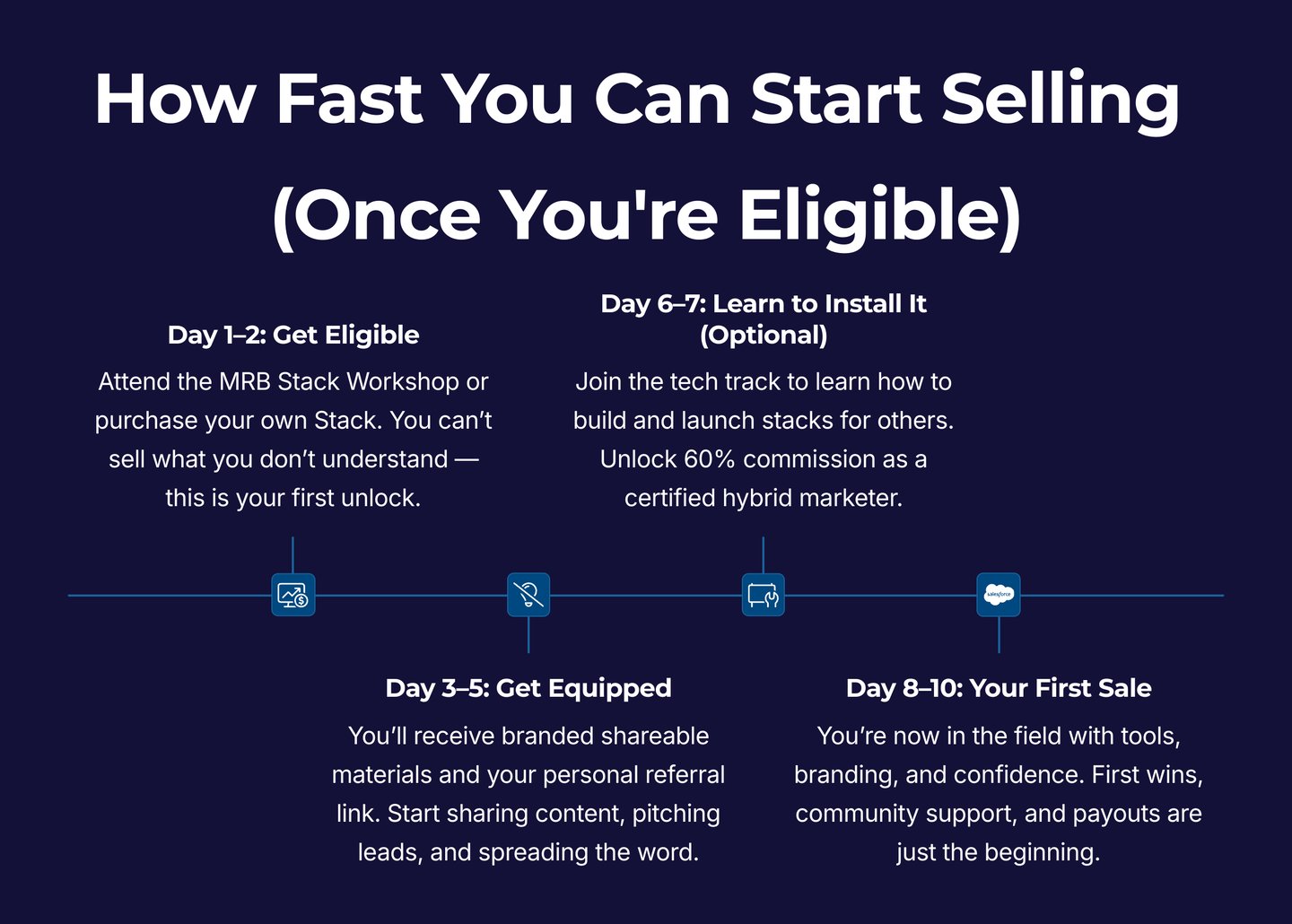🚨 Eligibility Requirement: To become a Future Founder, you must either purchase The MRB Stack or attend our two-part live workshop. You can’t sell what you don’t know — and we’ll teach you how to master the system.