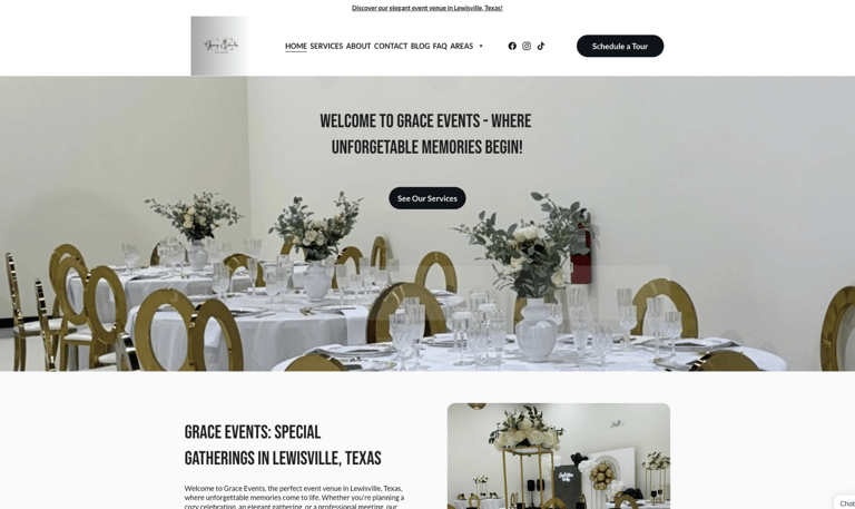 After: We redesigned her website to give her an AI-powered, SEO-ready site, installed the full MRB Stack with automated lead capture, SMS/email follow-up, and a redesigned booking funnel. Grace Events is now positioned to dominate local event bookings in Lewisville—without the high-ticket agency costs.